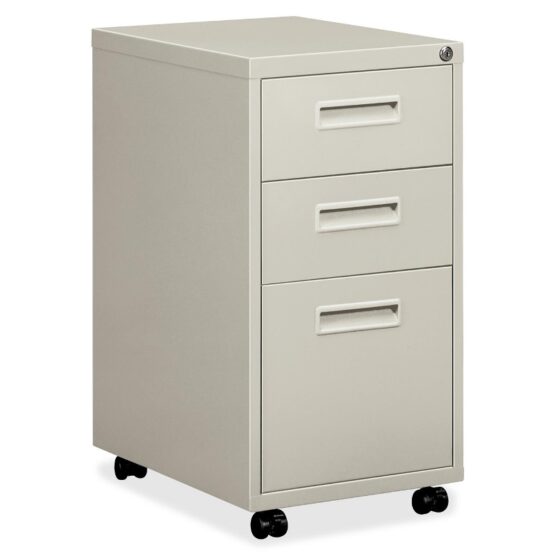 Full cradle drawer suspension with nylon rollers for smooth, quiet drawer action. Drawers open fully to provide easy access to entire drawer contents. High drawer sides eliminate the need for hangrails. An adjustable wire follower in each drawer keeps files upright and neat. HON One Key core removable lock installed. Color(s): Putty; Width: 18 1/4 in; Depth: 25 in; Height: 29 in.