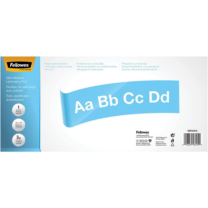 Fellowes Laminating Sheet, Self Adhesive, 3 Mil, 10′(H) x 16″(W) Roll