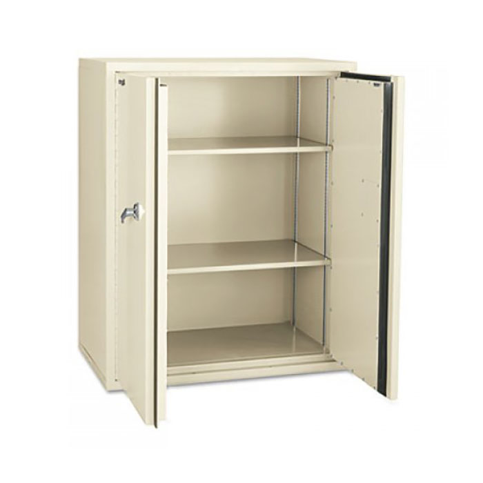 Designed to accommodate oversized binders and end-tab filing. Insulated to protect valuables. High-security lock ensures resistance to picking and drilling. Durable finish helps resist scratches and dents. 44″ Height Two adjustable shelves. Color: Parchment; Overall Width: 36″; Overall Depth: 19.25″; Overall Height: 44″.