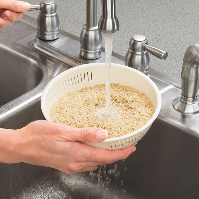 - Included rice rinser doubles as a steam basket