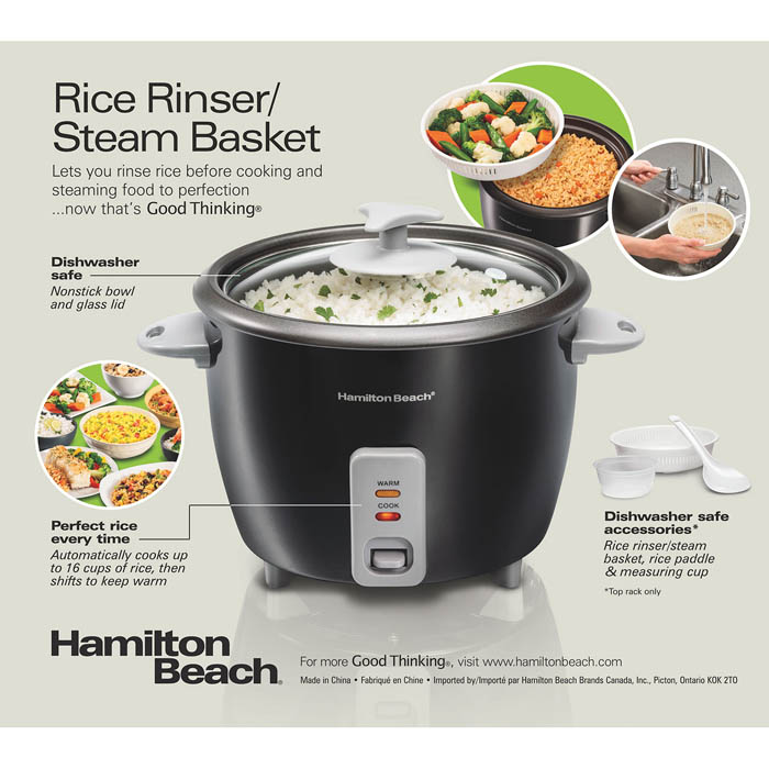 Hamilton Beach 16 Cup Capacity (Cooked) Rice Cooker & Food Steamer