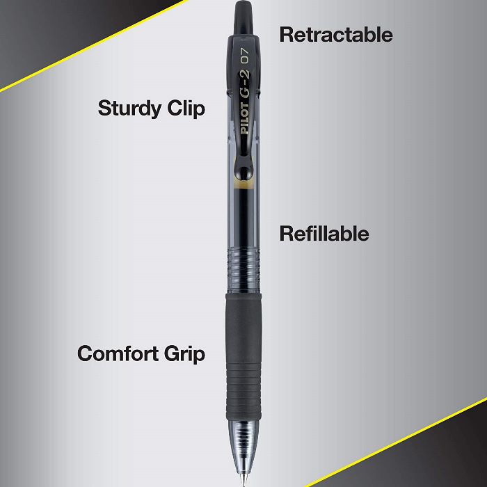 PILOT G2 Premium Refillable & Retractable Rolling Ball Gel Pens, Fine Point, Black Ink
