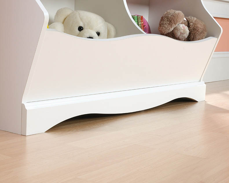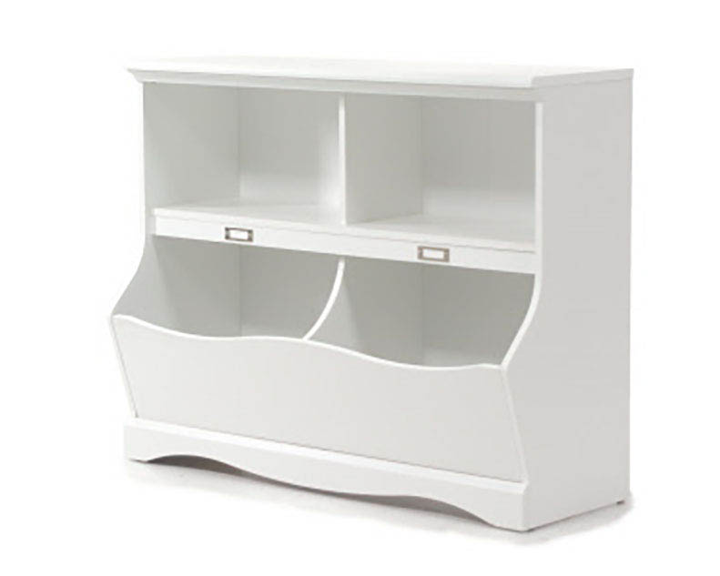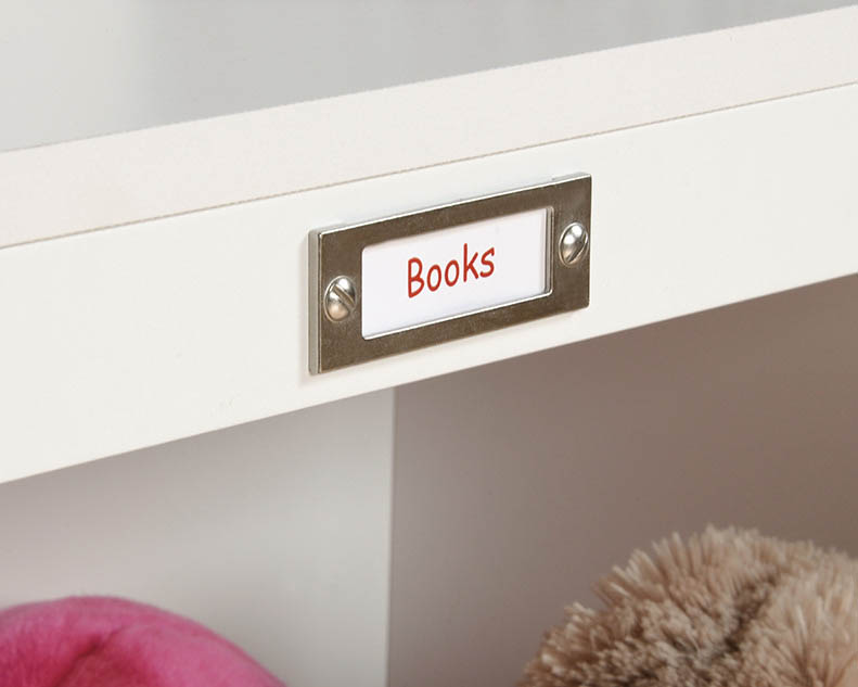 Give your child’s room a cute and fun way to keep organized with this bookcase/footboard from the Pogo collection. Store stuffed animals, books, blankets and more in the cubbyhole storage or the storage bins. Each storage bin features an ID tag for even more organization. Finished in a sleek Soft White, this charming bookcase is like a dream come true.