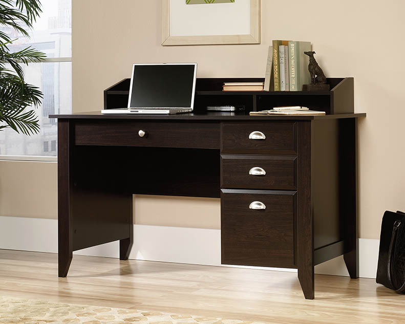 Working from home never looked better. This desk from the Shoal Creek collection is everything you’ve been looking for, it includes three drawers that glide on smooth metal runners. The lower drawer holds letter-size hanging files. Need more? The organizer hutch features a full shelf and cubbyhole storage for all your office essentials. This desk will make working from home feel like a day off. Well, sort of.