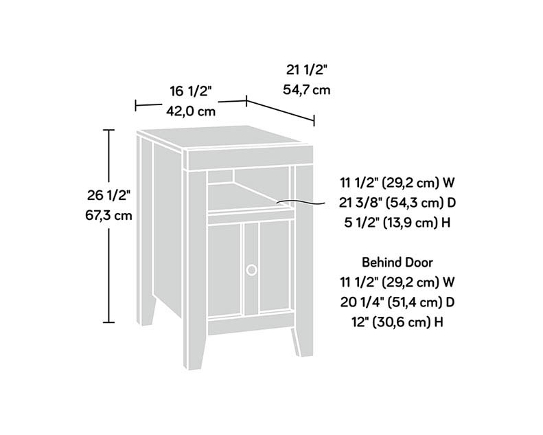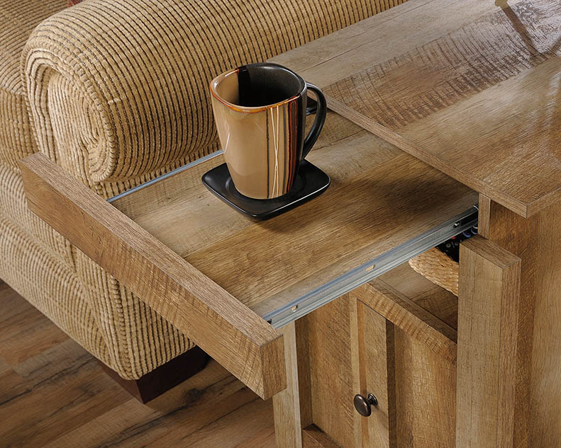 Practical and attractive. This side table from the Dakota Pass collection adds simple style to your living space. It features hidden storage behind the door, an open shelf for easy access storage, and a slide out shelf for additional tabletop space. Finished in Craftsman Oak, this rustic end table is a versatile fit for any room in your home.