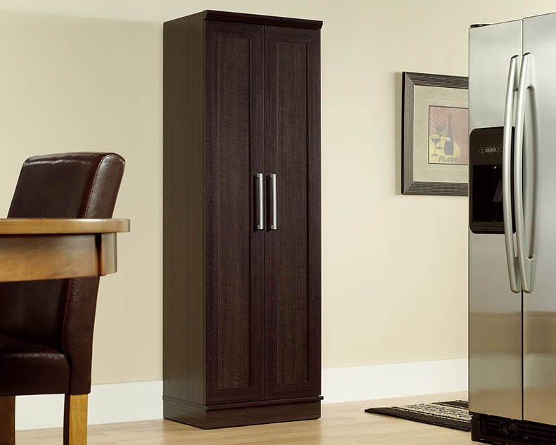 Increase the overall storage in your home with this storage cabinet from the HomePlus collection. Behind its framed panel doors are four adjustable shelves to store pantry food, towels, supplies and more! It features adjustable base levelers and an enclosed back panel with cord access. This storage cabinet will have your home looking stylish and organized in no time.